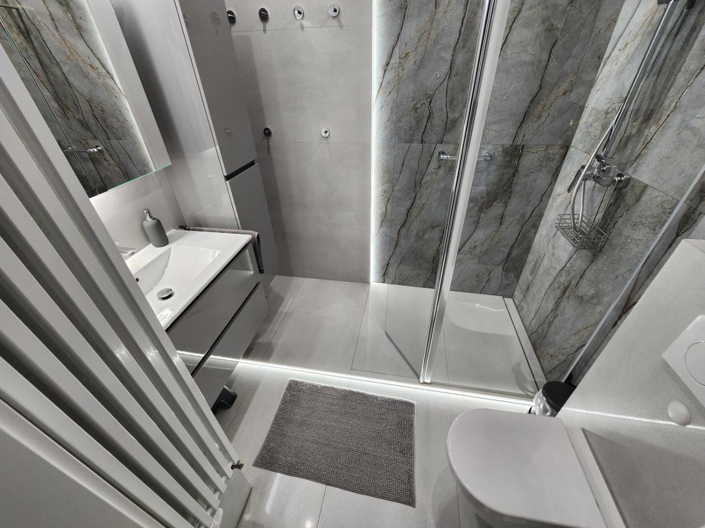 Apartament typu Superior z 1 sypialnią i balkonem. Boasting a private entrance, this air-conditioned apartment includes 1 living room, 1 separate bedroom and 1 bathroom with a walk-in shower and a hairdryer. In the well-fitted kitchen, guests will find a stovetop, a refrigerator, a dishwasher and kitchenware. This apartment has a washing machine, a tea and coffee maker, a flat-screen TV with streaming services and a balcony. The unit has 3 beds. Apartament - 5 osobowy. Powierzchnia pokoju ok.: 52 mkw.