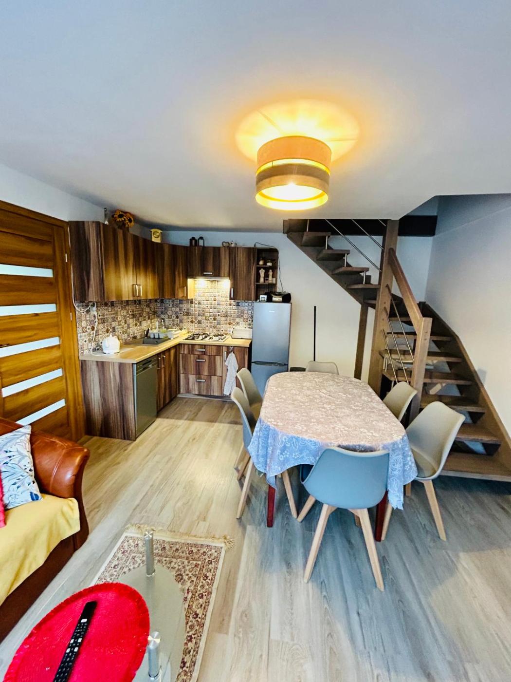 Dom z 2 sypialniami. Guests will find a stovetop, a refrigerator, a dishwasher and kitchenware in the well-equipped kitchen. The holiday home also includes a barbecue. Boasting a terrace with garden views, this holiday home also features a private entrance and a flat-screen TV. The unit has 4 beds. Dom wakacyjny - 6 osobowy. Powierzchnia pokoju ok.: 90 mkw.