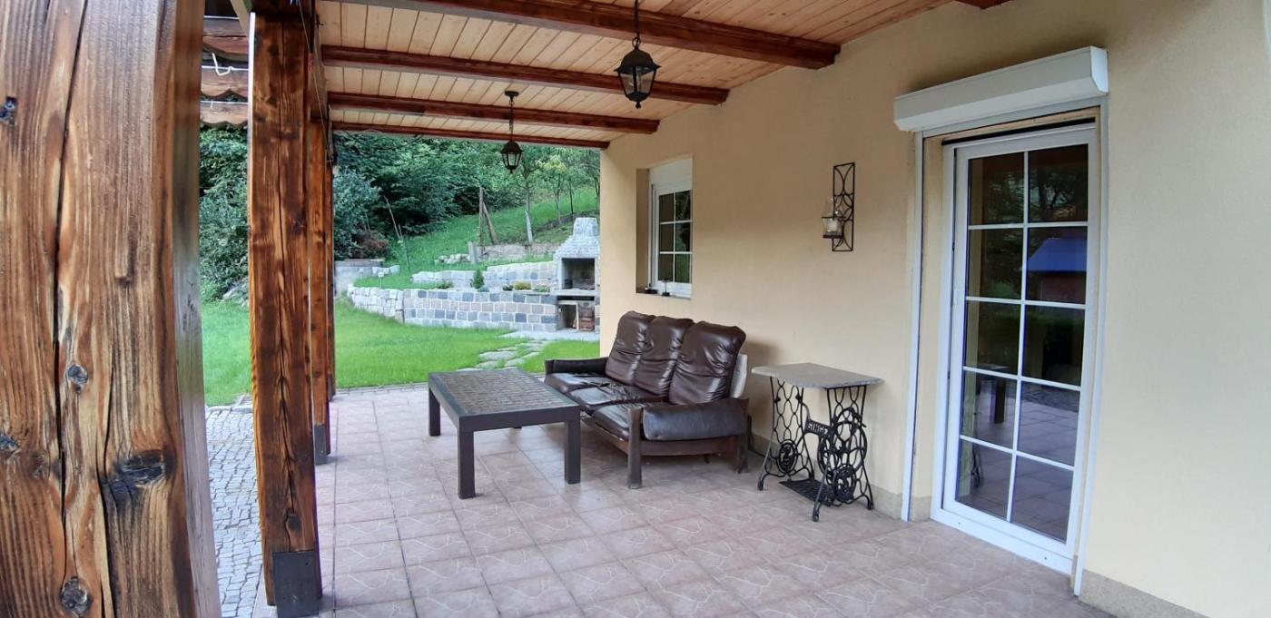 Dom z 3 sypialniami. This holiday homes standout feature is the fireplace. Guests will find a stovetop, a refrigerator, kitchenware and a microwave in the kitchen. The holiday home also has a barbecue. The holiday home offers a washing machine, a private entrance, a terrace with garden views as well as a shared bathroom featuring a shower. The unit offers 3 beds. Dom wakacyjny - 6 osobowy. Powierzchnia pokoju ok.: 80 mkw.